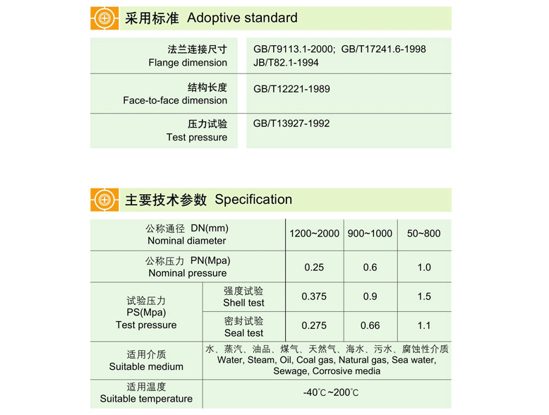 標準規范:1.法蘭連接尺寸:GB/T9113.1-2000  GB/T17241.6-1998     JB/T82.1-1994